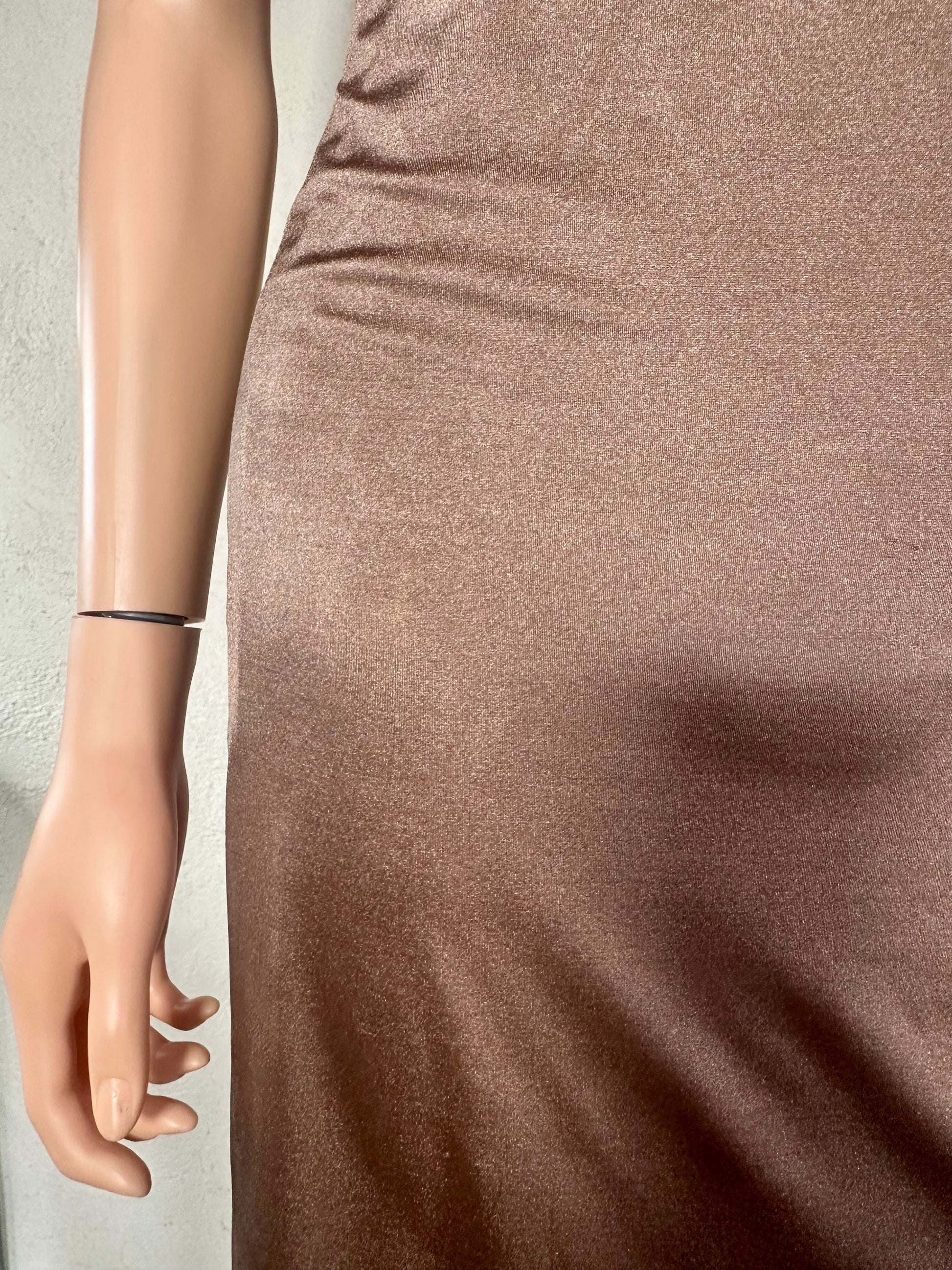 Designed as part of the Dolce & Gabbana Mare beachwear line, this piece offers two distinct looks thanks to its reversible construction. One side comes in a bronze tone with light signs of wear, while the gold-toned side is preserved in very good condition. A refined and versatile luxury beach dress, ideal for resort wear, seaside styling, or summer evenings.